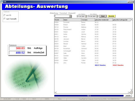 einer Auswertungs- bzw. Verwaltungssoftware.